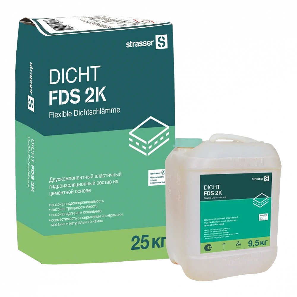DICHT FDS 2K Эластичный гидроизоляционный состав на цементной основе — надежное решение для защиты строительных конструкций от влаги и проникновения воды. Двухкомпонентная система обеспечивает высокую адгезию к минеральным основаниям и формирует прочное эластичное покрытие, способное компенсировать незначительные деформации поверхности. Материал подходит для применения внутри и снаружи зданий, включая зоны с повышенной влажностью и прямым контактом с водой.