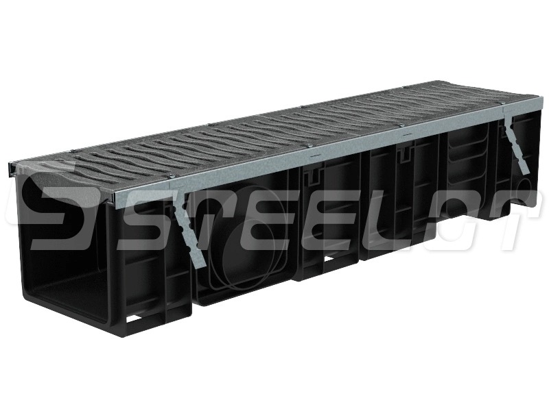 Основной желоб сделан из прочного пластика, устойчивого к ультрафиолету и прочим факторам воздействия. Ему не страшны колебания температур и постоянное воздействие влаги. Такие дренажные лотки хорошо подходят для отвода воды, поскольку имеют гладкие внутренние стенки. Хорошая проходимость системы исключает заиливание, при этом не нуждается в специальном обслуживании и уходе.